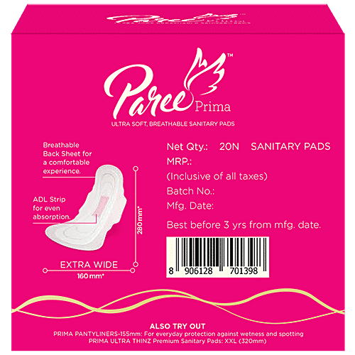 Buy Paree Prima Ultra Soft Breathable Sanitary Pads XL Online at Best Paree Sanitary Pads Xl Price paree soft & rash free heavy flow pads, xl 40 period pads +50mm longer, super soft. paree soft & rash free sanitary pad | xl size| 3 seconds absorption for heavy flow sanitary pad (pack of 80) 4.1. paree soft & rash free xl sanitary pad, with 3 seconds absorption for heavy flow sanitary pad paree. Paree Sanitary Pads Xl Price.